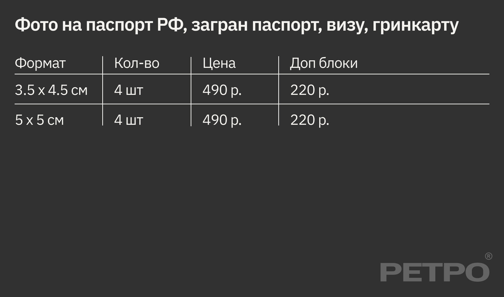 Фото на паспорт РФ, загран паспорт, визу, гринкарту