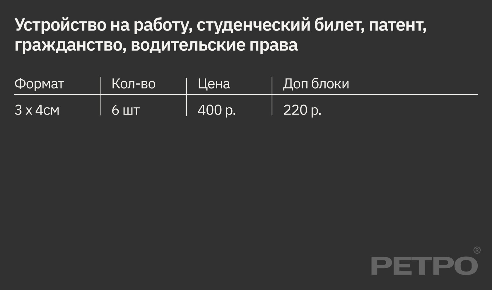 Устройство на работу, студенческий билет, патент, гражданство, водительские права
